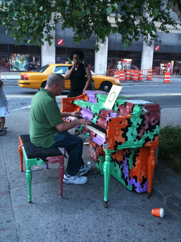 There are 60 funky pianos hanging out around the city starting today. The project is called “Play Me, I’m Yours”. I saw this guy having fun playing some vaguely recognizable pieces outside of the Astor Place 6 train this evening. Two thumbs up to this project.