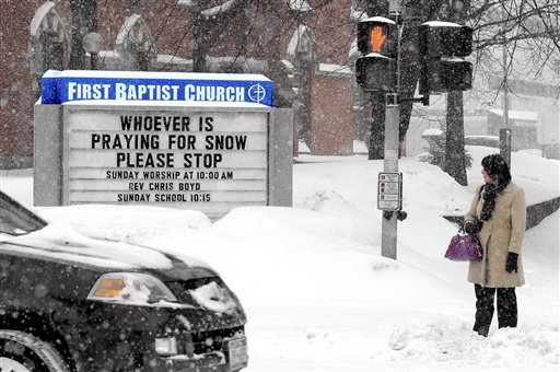 Rebecca Valk walks to her office in Poughkeepsie, N.Y., in near whiteout conditions Tuesday, Feb. 1, 2011. A monster storm began to bear down on the middle of the nation Tuesday, threatening to leave up to a third of the nation covered in brutal winter weather. (AP Photo/Poughkeepsie Journal, Spencer Ainsley)