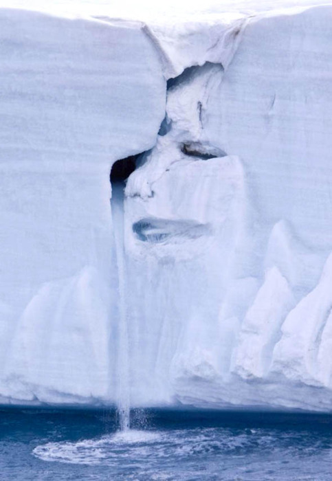 A dramatic picture taken by Michael Nolan has been dubbed the face of Mother Nature crying on a canvas of melting ice and cascading water on a Norwegian Glacier. Randy Schutt discovered this amazing photo which shows a crying face in an ice cap located on Nordaustlandet, in the Svalbard archipelago of Norway. The tears of this natural sculpture were created by a waterfall of glacial water cascading from one of the face’s eyes, thus painting an alarming picture warning the world about the effects of global warming. Michael Nolan is a marine photographer and environmental lecturer. He has captured this picture while on an annual voyage to observe the glacier and surrounding wildlife. It’s best to quote Nolan’s words on this: