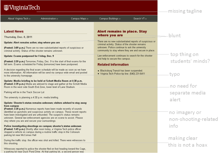 Posted on December 8, 2011April 13, 2014 by jenbokoff Virginia Tech’s homepage, 4:10pm, December 7. Share this: Click to share on X (Opens in new window) X Click to share on Facebook (Opens in new window) Facebook Like Loading... Related
