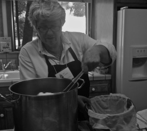 “Stretching” and mixing in hot water.