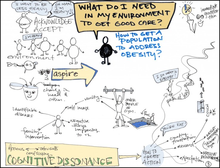 Amanda Lyons, the owner of Visuals for Change and sketchnoter extraordinaire, recently sat in on a conversation about healthcare for a meetup of IXDA of Northern NJ. This is one of the resulting pages of notes; check out the rest.