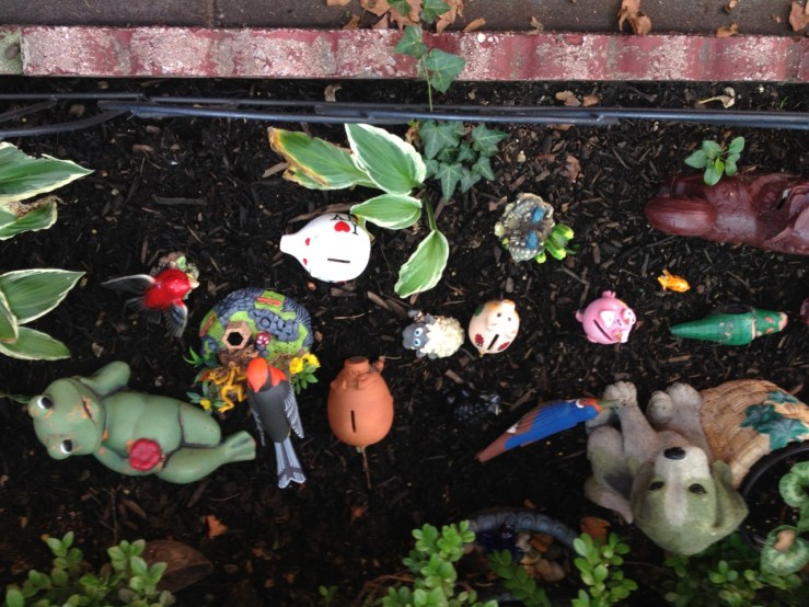 This garden on Carlton Ave. between Prospect Pl. and Park never fails to make me smile. Everyone who walks by pauses to look, often smiling or snapping a picture. It changes in appearance sometimes (animals get rearranged, accessories are added…) but the shared delight in the space remains the same.