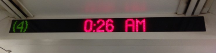 I snapped this photo coming home from the Yankees game. I like that NYC is using the 24 hour clock (aka military time in the US and Canada), but 1) they only do it with the midnight hour and 2) saying AM with 0:mm is unnecessary.